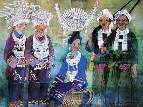 The Miao ethnic minority has a population of 8,940,116 which is larger than most of minority groups in China. After immigration in a long history, today they live mainly in Guizhou, Yunnan, Hunan, Hubei, Hainan Provinces and the Guangxi Zhuang Autonomous Prefecture. They are divided into several branches, such as Black Hmong, White Hmong, Striped Hmong, etc.