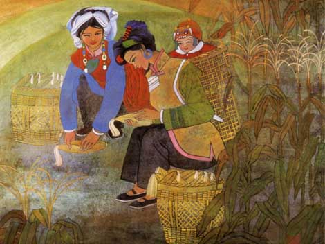 The Nu people celebrate festivals like New Year's Day, the Flower Festival and festivals for worshiping the god of grain and the god of the forest. On the first day of the lunar New Year, the Nu families prepare rich dishes early in the morning. Instead of eating these meals themselves, however, they feed the meal to oxen who are obviously very grateful for the treat. After that, they begin to invite friends to enjoy dinners together. During the Flower Festival, the fifteenth day of the third lunar month, they take corn, flowers, and objects of sacrifice to stalactite caves. Here they worship their ancestors, pick water falling from stalactites which they call 'fairy milk' and pour the water onto the fields for a good harvest or into wine for good health.