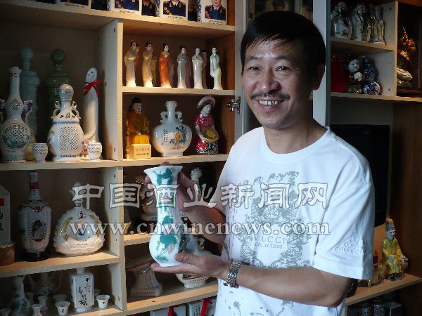 张慎龙今年55岁,爱好收藏瓷器、票证,其收藏历史至今已有20多年。张慎龙收藏酒瓶是近几年在武汉一次掏宝拍卖会上产生的念头。当时他以数千元拍得了动物类西凤酒瓶、熊猫酒瓶、龟蛇酒瓶;人物类寿星酒瓶、观音酒瓶;纪念类南水北调系列酒瓶。张慎龙在武汉酒文化专业委员会内算是个少壮派,他收藏酒瓶起步晚,但却定位高,藏品独树一帜,按张慎龙的话说,就是“你没我有,你有我优”。