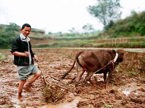 The custom of "whip the clay ox" is usually practiced among Chinese folks. A clay ox is made for the activity. As an old saying goes, if women circle around the ox thrice with their child in their arms, they would be exempted from any diseases. Today it has become a pure amusement. On the very day of "Spring Begins", a senior person shall be elected in the village to symbolically whip the clay ox thrice to announce the start of farming in the year. Then the villagers will batter down the clay ox, get their share of clay and sprinkle it in their farmland to wish for a big harvest in the year. People in some places will observe the humidity and color of the clay ox to predict the result of the year. If it takes on red color and dryness, there might be little rain in the year and drought should be prevented; if it appears black, there might be plenty of rain in the year and flood should be prevented. The farmers also sprinkle paddy on the clay cattle to prevent disaster or disease, which is called "get rid of pox".