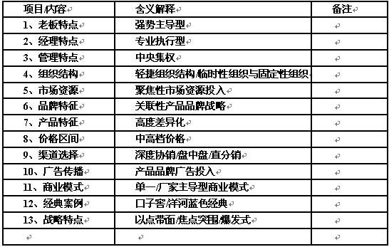 产品特征----产品高度差异化是实施点状战略重要的物质基础。由于点状战略属于战略聚集,一般对产品或者产品品牌的高度差异化要求很高,这也是点状战略特征所决定的!一般情况下,制造商都会借力咨询公司来完成点状战略产品升级改造!如五年口子窖,洋河蓝色经典,太白大手笔,扳倒井国井等。
