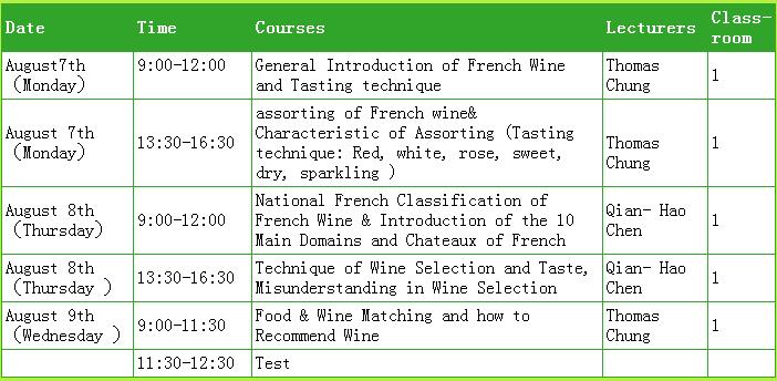 Trainees will have a taste of 4 kinds of French wine during each period. After this course, trainees will have fundamental knowledge on French wine and various production regions