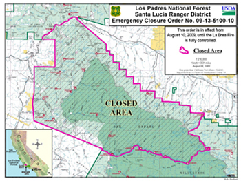 An emergency closure order was issued for portions of Los Padres National Forest in and around the fire. For more information, click here or call 805.681.5770.