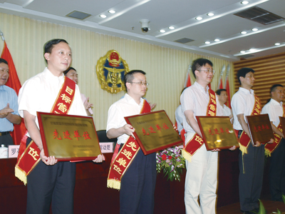 遂宁市质监局获得“全省质监系统2008年度目标管理先进单位”领奖现场。