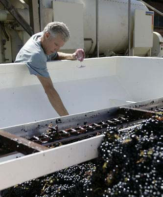 如果要生产新鲜的果香型红葡萄酒,需要在一部分葡萄果粒内进行发酵。这样只要将部分的葡萄果粒破碎,保留20~30%的整粒葡萄。这种发酵方法,由于CO2的浸取作用,使葡萄皮中的芳香物质更多地释放出来。