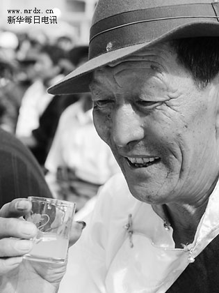 8月23日,拉萨市城关区纳金乡农民索朗次仁在品尝青稞酒。当日,拉萨市城关区举行雪顿节青稞酒大赛,对各乡镇选送的青稞酒进行评比,各乡镇派出选手进文章来源中国酒业新闻网行喝青稞酒比赛。(新华社记者索朗罗布 摄)