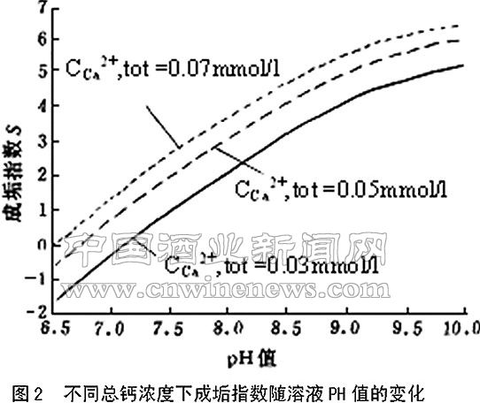 由图1可以看出,pH越高,CO32-的溶解速率越快,且着陆在设备表面的速率越快,CaCO3的溶解度越低,会更多的沉淀下来。因此,随着pH的上升,水垢产生量越大。