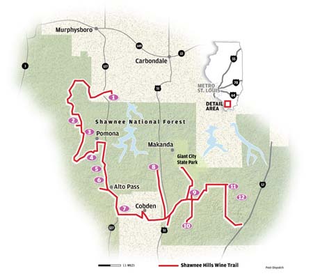 Twelve of those wineries are on the Shawnee Hills Wine Trail, which meanders some 25 miles from Pomona to Makanda. Finding those dozen is like a treasure hunt, with each providing a shady nook to sample their wines and enjoy the scenery.