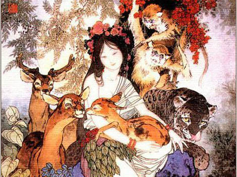 One daughter of Emperor Yan, named Yaoji, is a beautiful and passionate girl who died before getting married. To show pity for her, the Great Emperor of Heaven conferred on her soul the Goddess of the Cloud and Rain. In the early morning, she would be a piece of beautiful cloud, drifting among the hills and canyons; while at dusk, she would be a spell of drizzle, pouring out her grief and complaint towards the high mountain and flowing water.