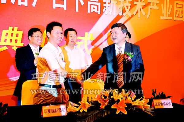 7月28日,江苏百利集团董事长楼贵舜与江苏金蝶总经理汪向国在南京金陵饭店签署合作协议,一期总投资1800万元的华夏国际酒都电子商务平台项目正式启动。此次签约也标志着华夏国际酒都“中国酒业立体化营销平台”和“三位一体”战略正式启