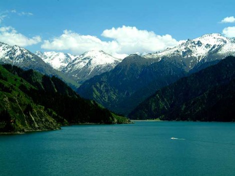 The snowy peak of Tianshan Moutain-Bogda Peak, is covered with snow all the year round and thus nicknamed “the sea of snow”. On the mountainside of Bogda Peak, there’s a lake called “Tianchi” (meaning “heavenly lake”). It is 1,900 meters above sea level and as deep as 90 meters. The crystal-clear lake water is made up of melted ice and snow. The lake is like a big mirror reflecting the snow-white peak and emerald-green spruce trees. The picturesque spot is a famous tourist attraction.