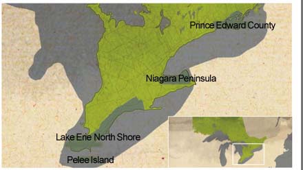 Ontario's Appellations. Map courtesy of VQA Ontario.