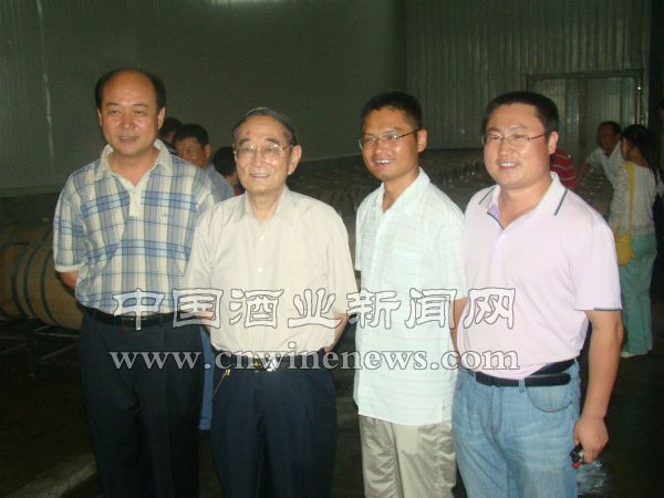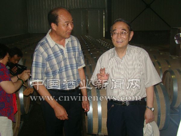 (配图1:厉以宁一边参观汉森酒庄,文章来源中国酒业新闻网一边聆听汉森酒业集团总裁撖建平先生的工作汇报。)