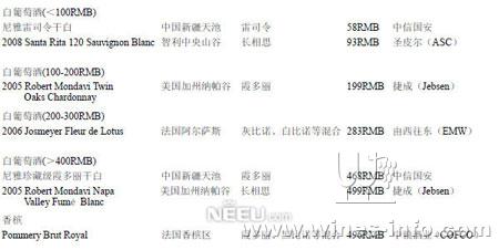 细心观察本次获奖葡萄酒的名单可以发现,红葡萄酒相对于白葡萄酒在中国更有市场,最终至尊金奖中的红白比例为19:7!在评审眼中,价格并不能代表葡萄酒的质量,不少价格不菲的葡萄酒最终并未进入至尊金奖的名单。至尊金奖中红葡萄酒的平均价格约为250元人民币,最低价格为102元人民币;而在白葡萄酒分类中最低的价格仅为58元左右。整体上看,进口葡萄酒已经在逐渐的拉近与消费者的距离。法国葡萄酒在中国仍然占据着主导地位,在26款至尊金奖中,法国葡萄酒占据了7席的位置,排名第二的国家则为澳大利亚和美国。赤霞珠与霞多丽仍然是最受大家喜爱的红、白葡萄品种,长相思正在成为白葡萄酒中的新宠,这与国际市场的潮流基本一致。在评审中,评审专家还特别针对中秋以及国庆的家庭团聚给出了葡萄酒搭配中餐的建议,有关详情请查询本次活动位于酒立方上的官方网站。