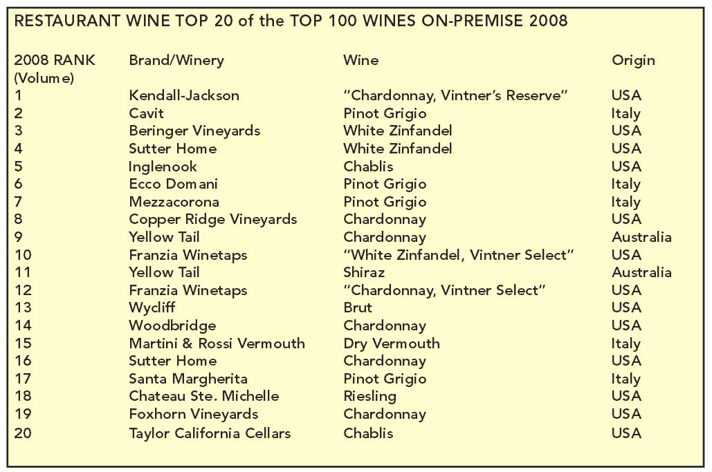 Restaurant Wine Top 20 of the Top 100 Wine Brands On-Premise 2008