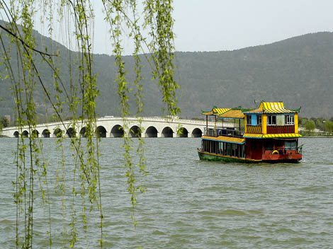 There are rich tourist resources and human scenery around Lake Shang, such as the National Forest Park-Yushan Mountains, the ancient temple with a history of 1000 years-Xingfu Temple, "Lu Dang Kindling"-Shajia Bang and tombs and former residence museums of Jiang Shang, Yan Zi and Weng Tonghe, etc. In order to obtain its own focal tourist product for Shanghu, attract tourists at home and abroad to come to Changhu spring traveling and visiting temples and promote the development of tourist industry of Changhu, since 1988, succeeding Luoyang, Henan and Heze. Shangdong, Changhu has hosted Shanghu Lake Peony Fair with great influences in Hu Ning region.
