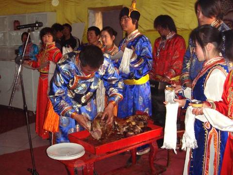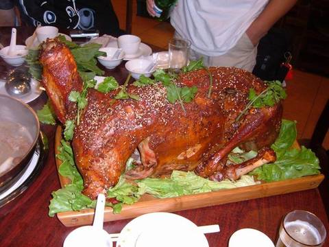 Whole roast lamb is Mongolian's traditional food. It is popular in Inner Mongolia and Xinjiang.