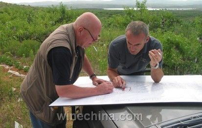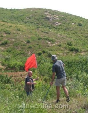 此次测绘,将详细划定出酒庄的车间、办公区等的具体位置,并进行了精确的定位,为以后的实际施工做准备。测绘现场,埃里克和高林首先根据地图,在周围的山坡上用标出几个点来确定范围,然后测绘局工作人员用仪器测出每个点的坐标,未来酒庄将根据这些数据来进行施工。