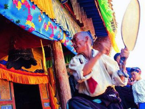 The word "Regong" is a Tibetan name of a place, meaning golden valley. It is located in Tongren County, Huangnan Tibetan Autonomous Prefecture, Qinghai Province. The June Festival is a large-scale sacrificial performance activity prevailing among Tibetan and Tu people. Popular in Tongren County, the festival is held annually between June 17 and 25 of the lunar calendar. This is the best season on the plateau, as the flowers are in full blossom, the herbage is luxuriant, and the wheat and corn are ready for the coming harvest.