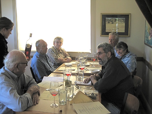 During a luncheon and tasting grape growing pioneers Myron and Marilyn Holdenried, Walt and Madelene Lyon, and Larry Rogers shared information about Lake County’s history with the journalist.