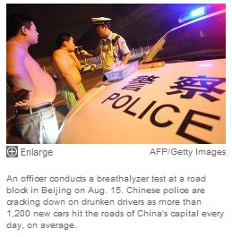 China acted after drunken-driving cases jumped 9% in the first half of the year, including a series of well-publicized traffic fatalities. By the end of July, 97 people were killed in Beijing alone this year by drunken drivers, according to city police.