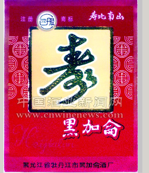 这两张寿字酒标,设计精美,图案各异。一枚是黑龙江某酒厂的,大红底色,中间一个行草“寿”字,四周用寿字古体图案衬托,加上“寿比南山”的字样,显得喜气洋洋。一枚是湖北某酒厂的酒标,主图是个大寿桃,用两片绿叶衬托,好像绿色寿盘盛着寿桃,一个楷书“寿”字嵌在中央,寓意蟠桃献寿。传说蟠桃是王母娘娘种的仙果,其枝伸展万里,三千年开一次花,三千年结一次果,历时如此久远,当为献寿佳品。欣赏着这两枚寿桃酒标,一种吉祥喜庆的美感油然而生。