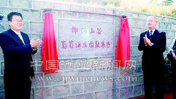 9月21日,国际葡萄与葡萄酒组织(OIV)主席伊维斯·贝纳与《华夏酒报》总编辑刘世松在河北省秦皇岛市卢龙县酿酒葡萄基地共同为“柳河山谷葡萄酒庄园聚集区”揭幕。法国亚洲发展委员会主席、法中关系委员会主席让·皮埃尔·阿贝·阿斯哈,北京中法合资波龙堡酒庄董事长唐卫星和当地政府领导一同参加了此次揭幕仪式。