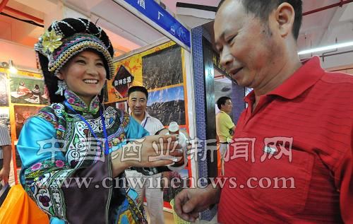 9月22日,一位彝族姑娘在向客人介绍一家贵州酒类企业的产品。