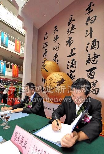 9月22日,一家酒类企业与经销商在博览会开幕式上签署合作协议。