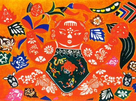 With a wild scope of subjects, the folk Paper-cut forms allegorical pictures through techniques such as partial tone and symbolization. For example, peaches symbolize a long life and pomegranate symbolizes a plenty of children; "Dragon and Phoenix is a good omen" indicating a happy and holy marriage; and "a magpie standing on a twig" means a good thing will happen. In the world of Paper-cut art, the skillful folk craftsmen make full use of their imagination to create various works with beauty and originality.