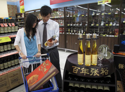 In supermarkets, icewines were displayed along with moon cake at most attracting places. There are icewines from Canadian , Germany, as well as local Changyu Icewines from Golden Icewine Valley, ranging from several dozen RMB to over RMB1000. According to Chen, a bottle of genuine icewine is usually priced over RMB 200.
