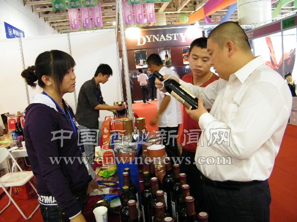 文章来源华夏酒报酒节上,烟台阳酒酒业有限公司推出的果酒新品桑葚酒受到了众多客商的青睐,图为公司业务员向客商介绍产品。