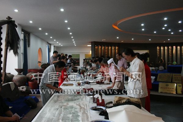 9月27日,在金风送爽,丹桂飘香之际,来自浙江的20多位书画名家齐聚“会稽山”,大家用手中的笔,在会稽山酒博物馆把酒吟诗,醉墨丹青,为共和国六十华诞添上华彩的一笔。