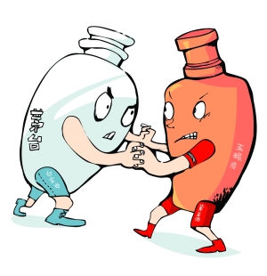 白金酒与黄金洒,一字之差,又同为保健酒,再加上其身后的两大白酒巨头,自然颇为外界关注。此前,五粮液独霸浓香型白酒、茅台独霸酱香型白酒。但2009年的糖酒会上,五粮液股份公司董事长唐桥公开宣称将于2009年上半年推出酱香型白酒;茅台集团总经理袁仁国则于3月26日在重庆召开的茅台旗下公司习酒经销商大会上振臂高呼:“习酒今年要在资本市场上市,成为浓香型白酒的拳头产品。”