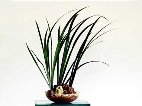 A bonsai creation involving the calamus not only has a poetic appeal, but also has an anti-pollution function. During their nighttime reading, ancient scholars would place a pot of calamus under the oil lamp. This is to prevent eye inflammation due to the smoke of the lamp, as the calamus is capable of absorbing granules in the air. In addition, the calamus is also an indispensable plant for adorning the ponds and lakes in traditional Chinese garden design.