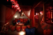 The new bar accentuates the restaurant’s China theme with seductive lounge areas dimly lit by traditional red lanterns and adorned with traditional furniture and Buddhist artifacts along the city’s hottest bar street.