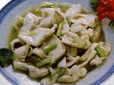 1. Wash the fish and dry well and cut into slices. Mix the egg white, cornstarch, and salt into a batter. Coat the fish slices with the batter.