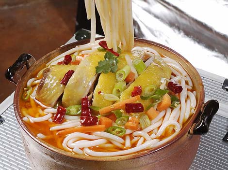 Not yet widely known outside the province, Dian cuisine is known mainly for its famousGuoqiao(Across the Bridge) rice noodle.