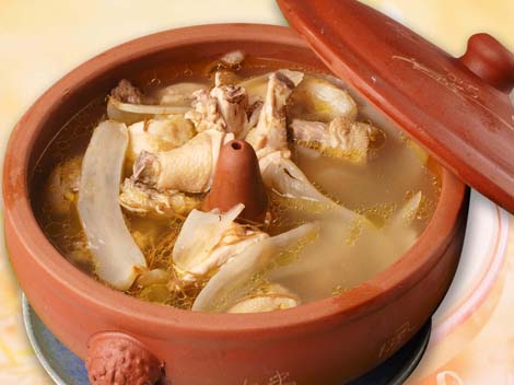 Other typical dishes include: steamed-pot chicken, earthen pot fish, Xuanwei ham, spiced squab, and chicken wing with goat stomach and local fungus.