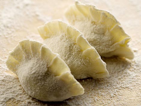 Chinese Dumplings: Chinese Dumplings look like silver ingots. Legend has it that the more dumplings you eat during New Year celebration, more money you can make in the New Year. Almost all Chinese people can make dumplings, first mix the dough, second make the dough into wrappers by a rolling pin, third fill the wrappers with pork, beef, vegetable, fish or anything else can be used as stuffing.