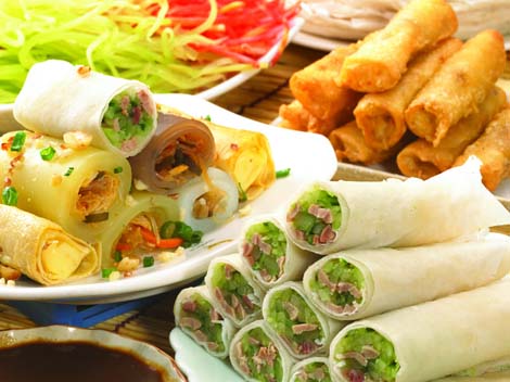 Spring Roll: People like Spring Roll because they are nutritious and delicious. Spring Rolls contain pork and vegetable. They can be easily taken on picnics. They get their name because they are traditionally eaten during Chinese New Year Celebration.
