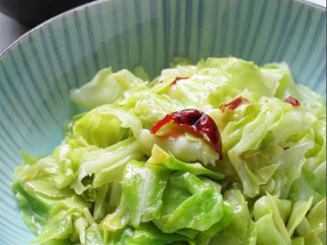 2. Heat the oil to 180-220:C (356-390:F) and stir-fry the red chilies. Add water, sugar and ginger. Stir well, and when it starts to boil, add the vinegar and turn off the fire. Pour this sauce into the basin with cabbage. Put on the cover and marinate another 4 hours before serving.