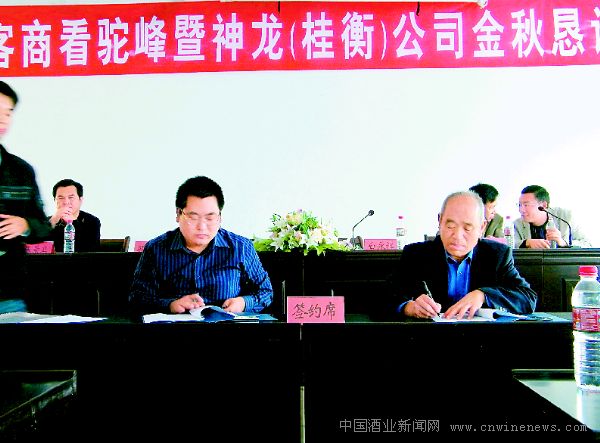 10月16日,江苏连云港神龙保健品有限公司“百名客商看驼峰暨神龙(桂衡)公司金秋恳谈会”在江苏省东海县举行,来自海南、甘肃、陕西、山东等全国各地近百名经销商参加了该活动。会上,海南、甘肃的新老客户代表当场与该公司签署了年销售500万元的合作协议。