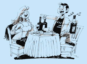 午市正兴,闹市地段一家饮食店内,两个衣着光鲜的年轻男女边聊边对酌。席间男的提出要有刺激:他喝一杯酒,女伴得脱一件衣服。女的答:赌就赌。条件是脱一件索要100元,还号称这是“双赢”。于是,一个“咕噜噜”喝了两杯,已东倒西歪;另一个赚了200元,身上只剩一件半透明的真丝衫。正当这对“现世宝”意犹未尽时,边上一位顾客实在看不下去,起身呵斥,这场闹剧才告“谢幕”。