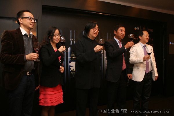 中粮集团中粮酒业副总经理王红女士、中粮君顶酒庄总裁陈云昌先生、时尚集团总裁刘江先生、《罗博报告》主编瘦马先生、《罗博报告》封面顶级艺术家叶放先生共同祝酒