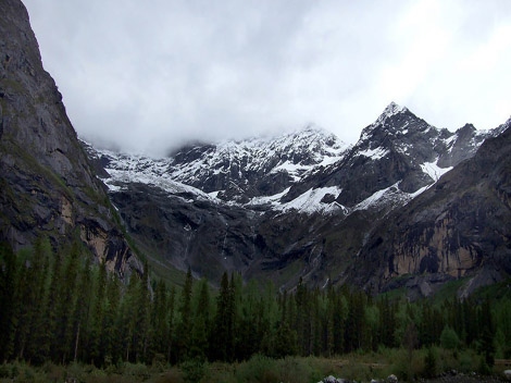 The Four Girl Mountain Scenic Area is an unspoiled wilderness park located in western Sichuan Province, near the town of Rilong in Aba Autonomous Prefecture. It's 220 kilometers (about 136 miles) from Chengdu, and will take you about five or six hours to reach by bus. The main attraction of this scenic spot is unspoiled natural beauty. The unusual shapes of the mountain peaks are rarely seen anywhere else in the world. The blue sky, clouds and mist, snow peaks, ancient cypress forests, rushing waterfalls, and alpine meadows make this area a nature lovers dream. The biggest scenic area in Aba Autonomous Prefecture, Four Girl Mountain Scenic Area includes one mountain-- Four Girl Mountain, and three valleys-Two-Bridge (Shuangqiao) Valley, Long-Peace (Changping) Valley, and Alpine-Lake (Haizi) Valley.