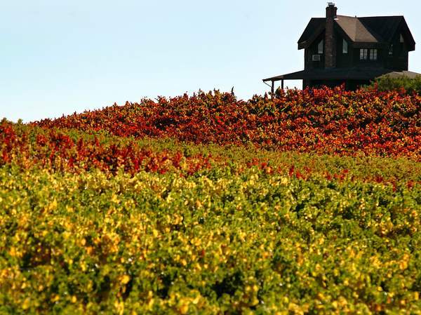 Christopher Chung / The Press De Leaves in a vineyard turn an array of colors, along Vine Hill Road near Guerneville Road, on Monday, October 26, 2009.