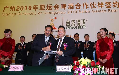 10月27日下午,台湾啤酒在北京人民大会堂与第16届亚运会组委会签约,成为广州亚运会啤酒合作伙伴。