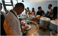 James Syhabout, foreground, behind the counter of Commis, his new Oakland restaurant.