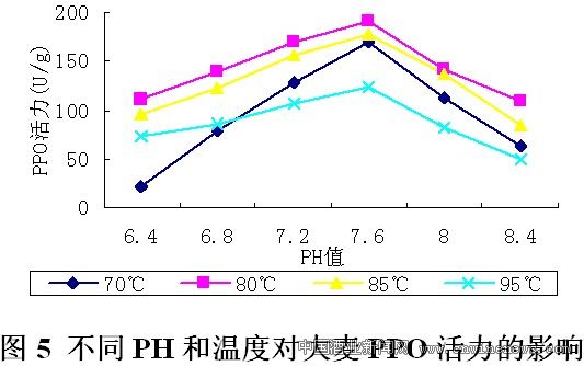 2,使酶活力降低。由此得出,PPO最适反应温度和pH参数分别为80℃和7.6。